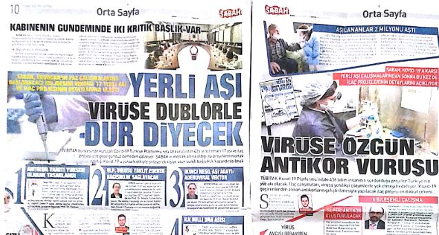 Mustafa Sait Özkan, 1-2 Şubat 2021 tarihli Sabah gazetesinde yayımlanan haberinde TÜBİTAK Kovid-19 Platformunda yer alan araştırma grupları ve projelerini anlatıyor.
