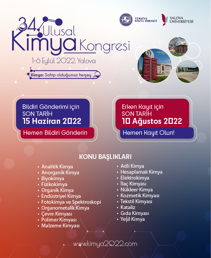 Kongreyle ilgili daha ayrıntılı bilgi için bakınız: 34. Ulusal Kimya Kongresi Web Sayfası