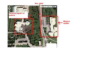 Not: Merkezi Amfiler, Merkezi Dersanelerden farklı bir binadır. Tarimsal Yapılar ve Sulama Binasının karşısındadır.